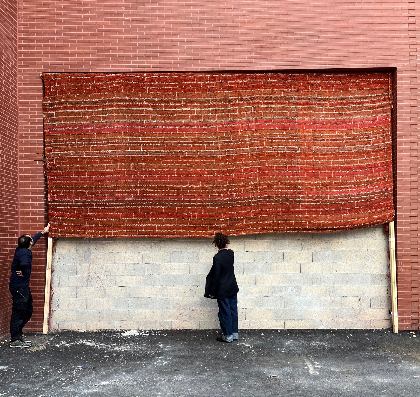 Il lavoro svolto con il Nuovo Grand Tour alla Fondation FIMINCO prevede la realizzazione di una scultura tessile che rappresenta un muro fatto di mattoni cuciti.
